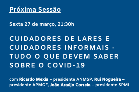 Esta sessão, com duração de 90 minutos, é especificamente dirigida a quem cuida de pessoas fragilizadas, em lares e estabelecimentos equiparados, ou no domicílio, com vista a transmitir os melhores conselhos para reduzir o risco de contágio e para lidar com casos potenciais de infecção.